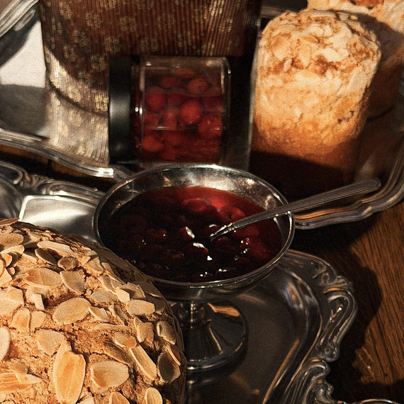| 300 гр Цельные ягоды вишни, выдержанные в амаретто по рецепту Michèle. Миндальная горчинка ликера гармонично дополняет ароматное тесто кулича.